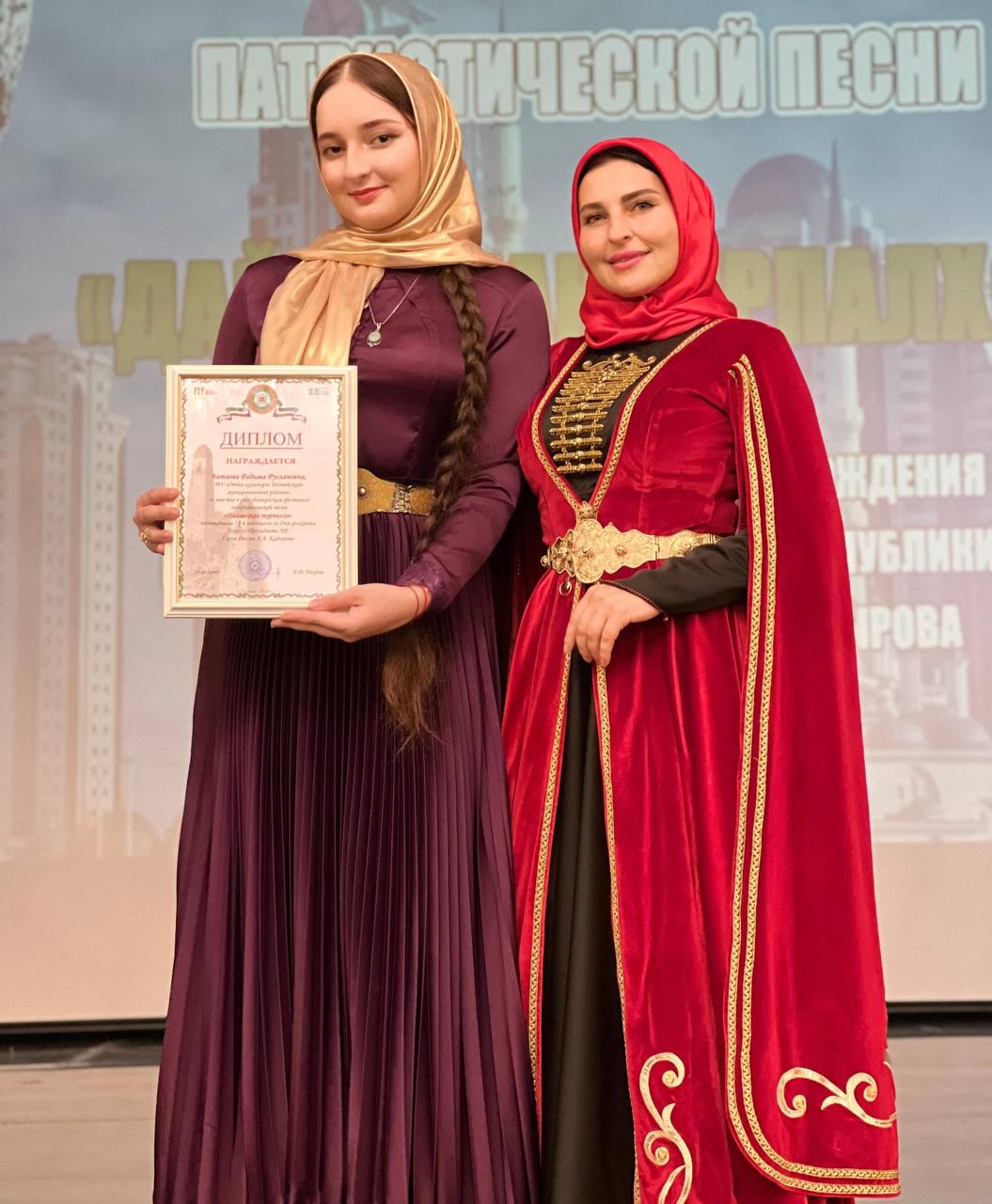 22.08.2024Батаева Радима стала лауреатом Республиканского фестиваля патриотической песни «Даймехкан Турпалхо», посвящённого 73-летию со дня рождения Первого Президента Чеченской Республики, Героя России Ахмата-Хаджи Кадырова. Мероприятие прошло во Дворце Культуры имени Ш. Эдисултанова. Радима продемонстрировала высокий уровень профессионализма и мастерства, представив на суд жюри и зрителей выразительное исполнение. Поздравляем ее с этим значимым достижением и желаем дальнейших успехов на творческом пути!