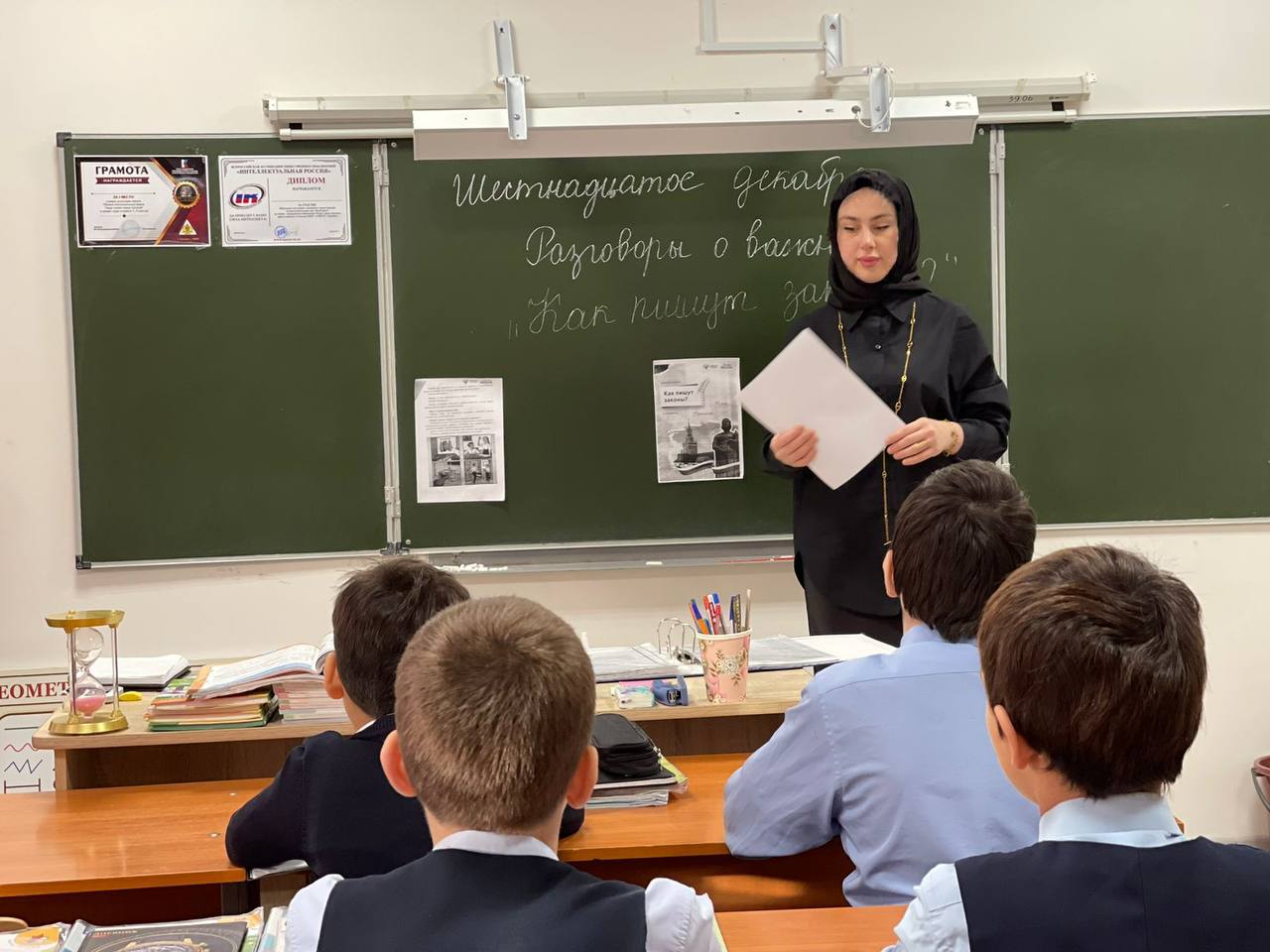 16.12.2024В нашей школе состоялось очередное занятие из цикла "Разговоры о важном". На этот раз ребята погрузились в увлекательный мир законотворчества, обсуждая тему "Как пишутся законы". В ходе беседы школьники узнали о важной роли законов в нашей жизни, о том, как они помогают поддерживать порядок и справедливость в обществе. Ребята активно делились своими мыслями о необходимости соблюдения законов и последствиях их нарушения. Особое внимание было уделено Конституции Российской Федерации – главному закону нашей страны. Ученики вспомнили, что именно в Конституции закреплены основные права и обязанности каждого гражданина. Живое обсуждение, интересные вопросы и активное участие ребят сделали это занятие по-настоящему познавательным и полезным. Благодарим всех участников "Разговоров о важном"! Уверены, что такие беседы помогут сформировать у молодого поколения ответственное отношение к закону и понимание своей роли в обществе.