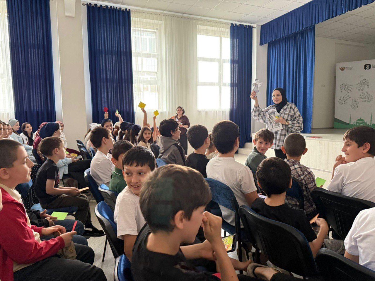 28.06.2025Презентация проекта «Родительский Альянс: Коллаборации Будущего» в МБОУ «СОШ №39 им.Айдамирова Р.А» города Грозного 28 июня 2025 года в рамках реализации грантового проекта «Родительский Альянс: Коллаборации Будущего», реализуемого за счёт денежной премии Российского общества «Знание» при поддержке родительского сообщества МБОУ «СОШ №39 им. Айдамирова Р.А.», состоялась презентация в МБОУ «СОШ № 39 им.Айдамирова Р.А.» города Грозного.В мероприятии приняли участие 150 обучающихся и 4 родителя, заинтересованных в развитии партнёрских отношений между семьёй и школой. Учащимся представили цели и направления проекта, включающие пять ключевых коллабораций: журналистика, творчество, наука, технологии и волонтёрство.Ребята познакомились с возможностями участия в совместных инициативах, направленных на развитие лидерства, креативности и практических навыков. По итогам презентации многие школьники выразили желание присоединиться к проекту и принять участие в предстоящих мастер-классах и конкурсах.#РодительскийАльянс #КоллаборацииБудущего #Школа39 #Грозный #Профориентация #Образование #СемьяиШкола#РоссийскоеОбществоЗнание #ЗнаниеРодители #ЗнаниеПремия
