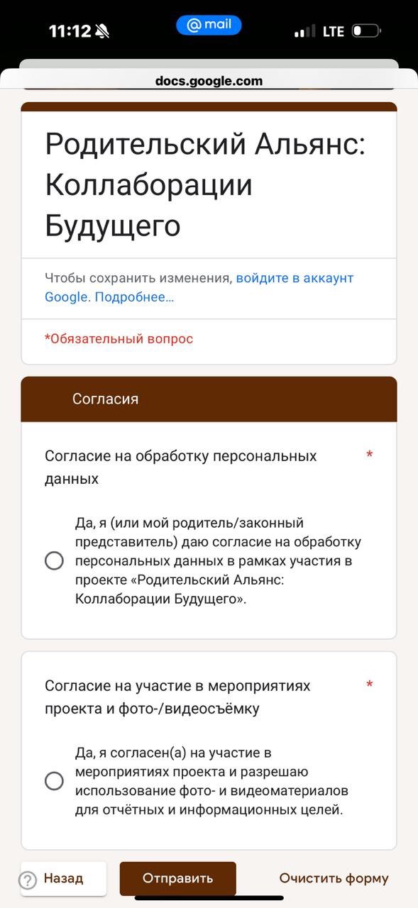 Профориентационное тестирование для зачисления в коллаборации проекта «Родительский Альянс: Коллаборации Будущего»