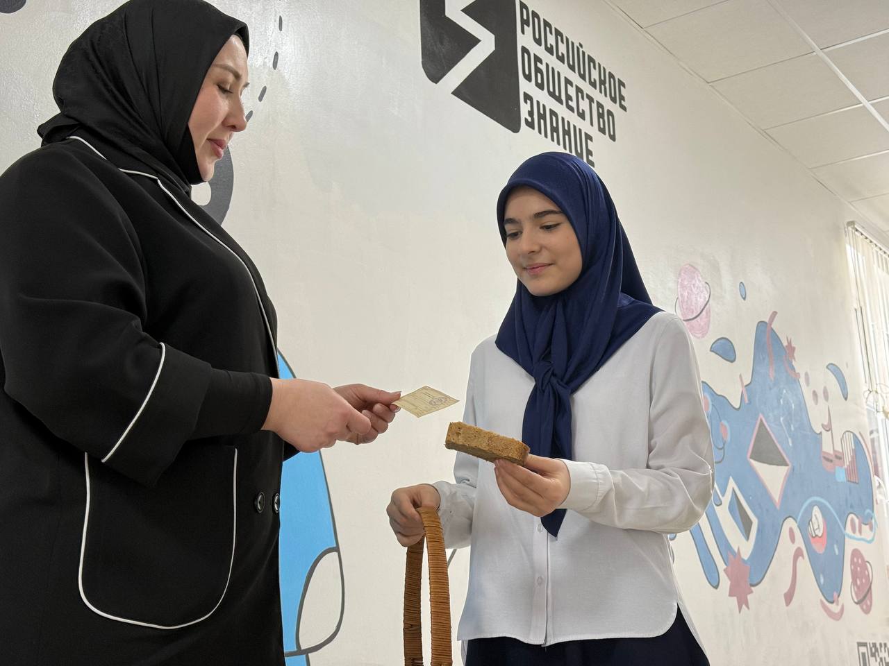 В память о погибших в годы блокады учащиеся школы раздавали символические кусочки хлеба, напоминая о том, какую цену заплатили ленинградцы за Победу.