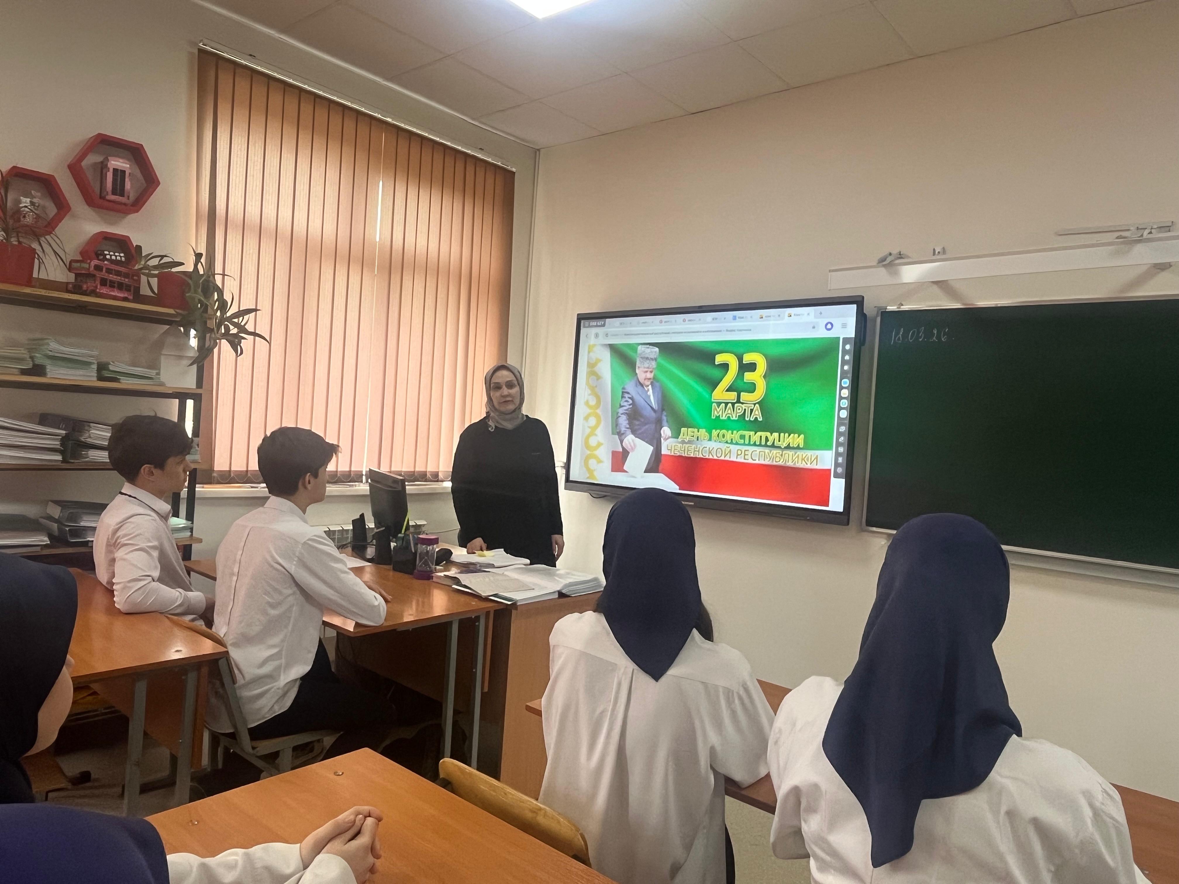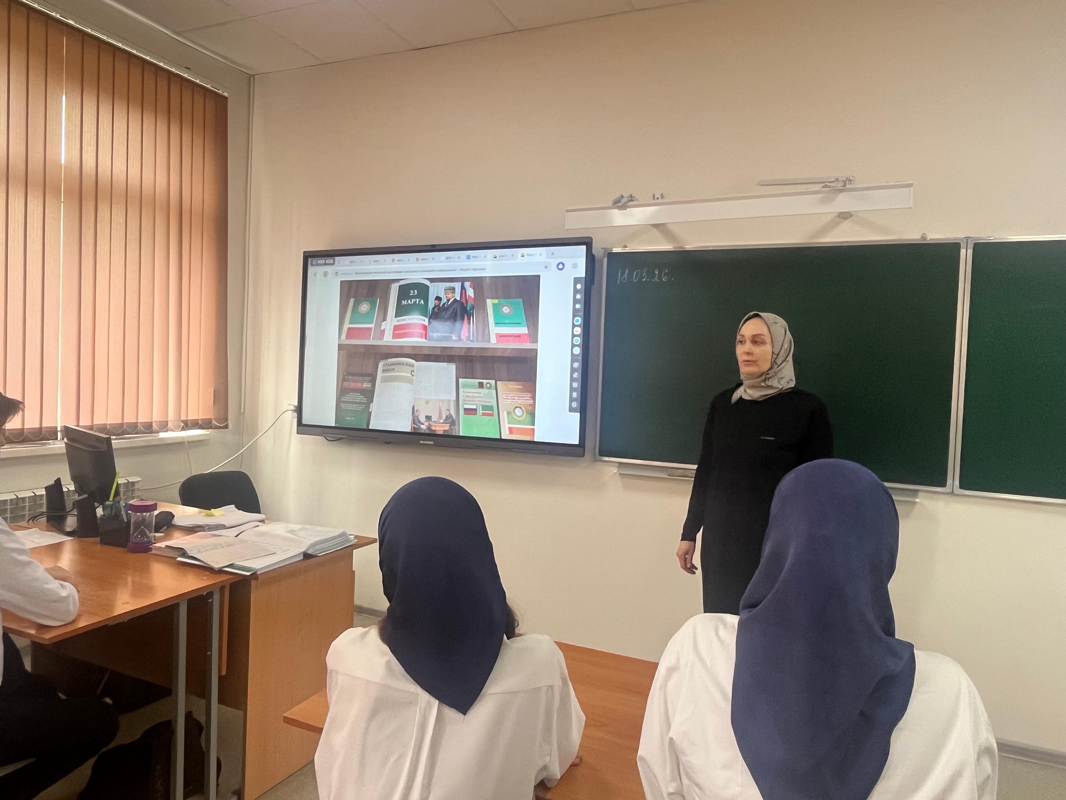 23.03.2026Классный руководитель Новрузова Эльза Шадтиевна провела для восьмиклассников классный час на тему «Мои права и обязанности». В ходе мероприятия ребята вспомнили основные права, закрепленные в Конституции РФ, и обсудили, какие обязанности есть у каждого гражданина. Особое внимание уделили вопросам ответственности несовершеннолетних и важности осознанного выбора в повседневной жизни.
